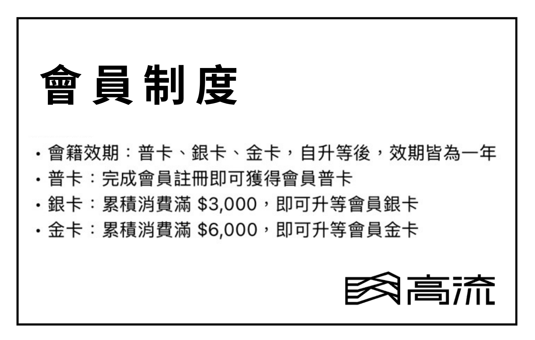 高雄流行音樂中心設立了三等級的會員制度,包括普卡、銀卡及金卡。普卡會員只需完成註冊即可獲得,銀卡會員則需累積消費滿$3,000,金卡會員需達到$6,000,所有等級的會籍效期均為一年。會員累積的點數可以兌換商城商品、展演門票,甚至參與線上抽獎活動,每消費滿100元即可累積1點。