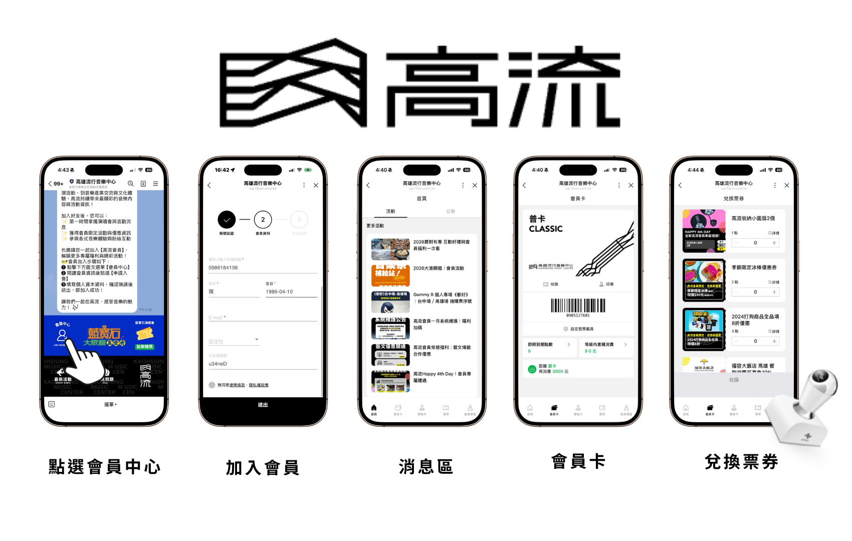 加入「高雄流行音樂中心」LINE官方帳號即可成為會員、累積專屬優惠